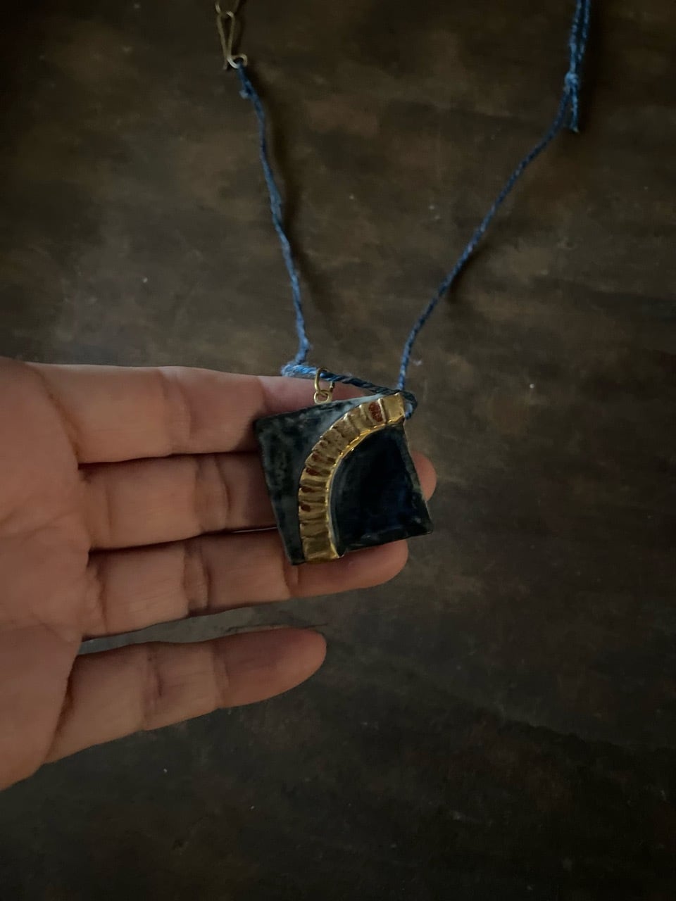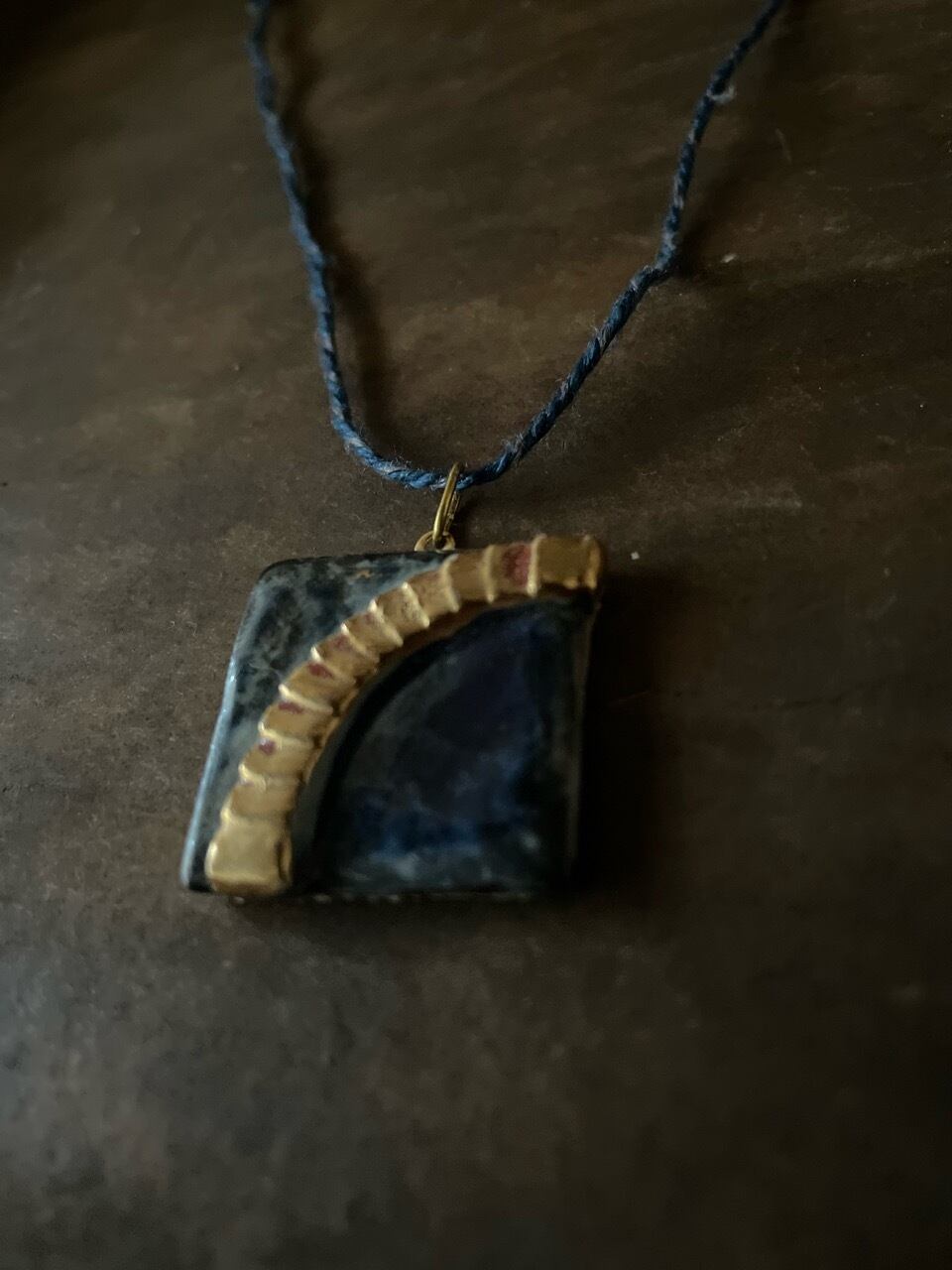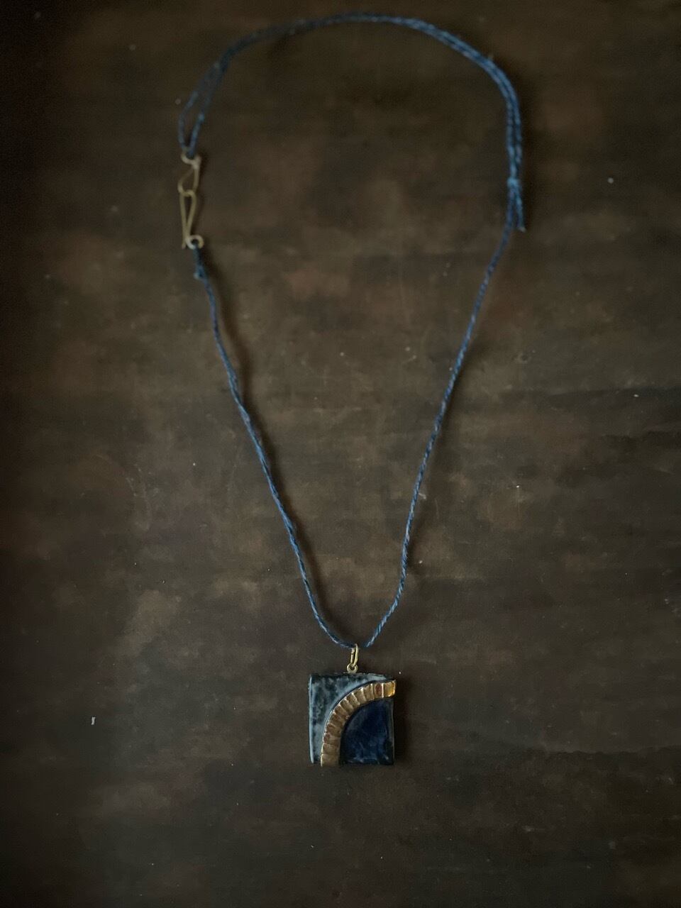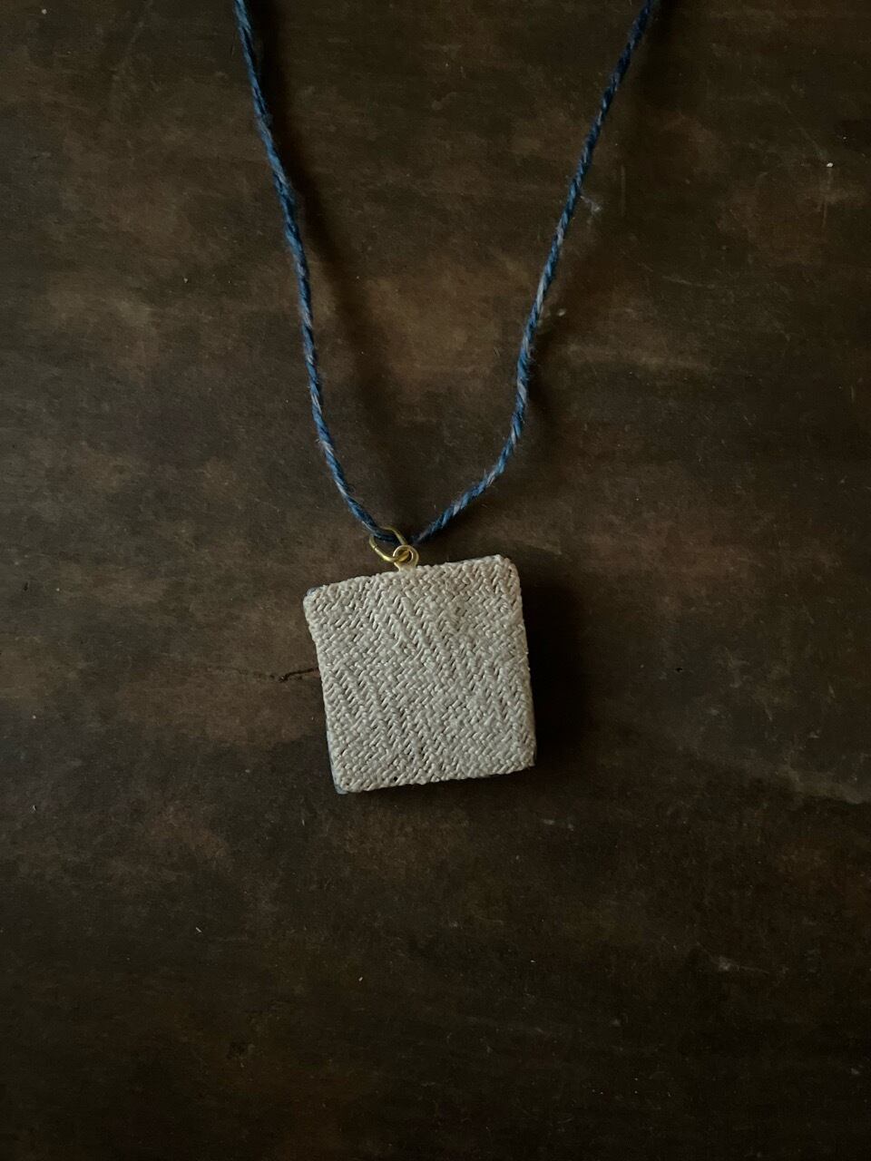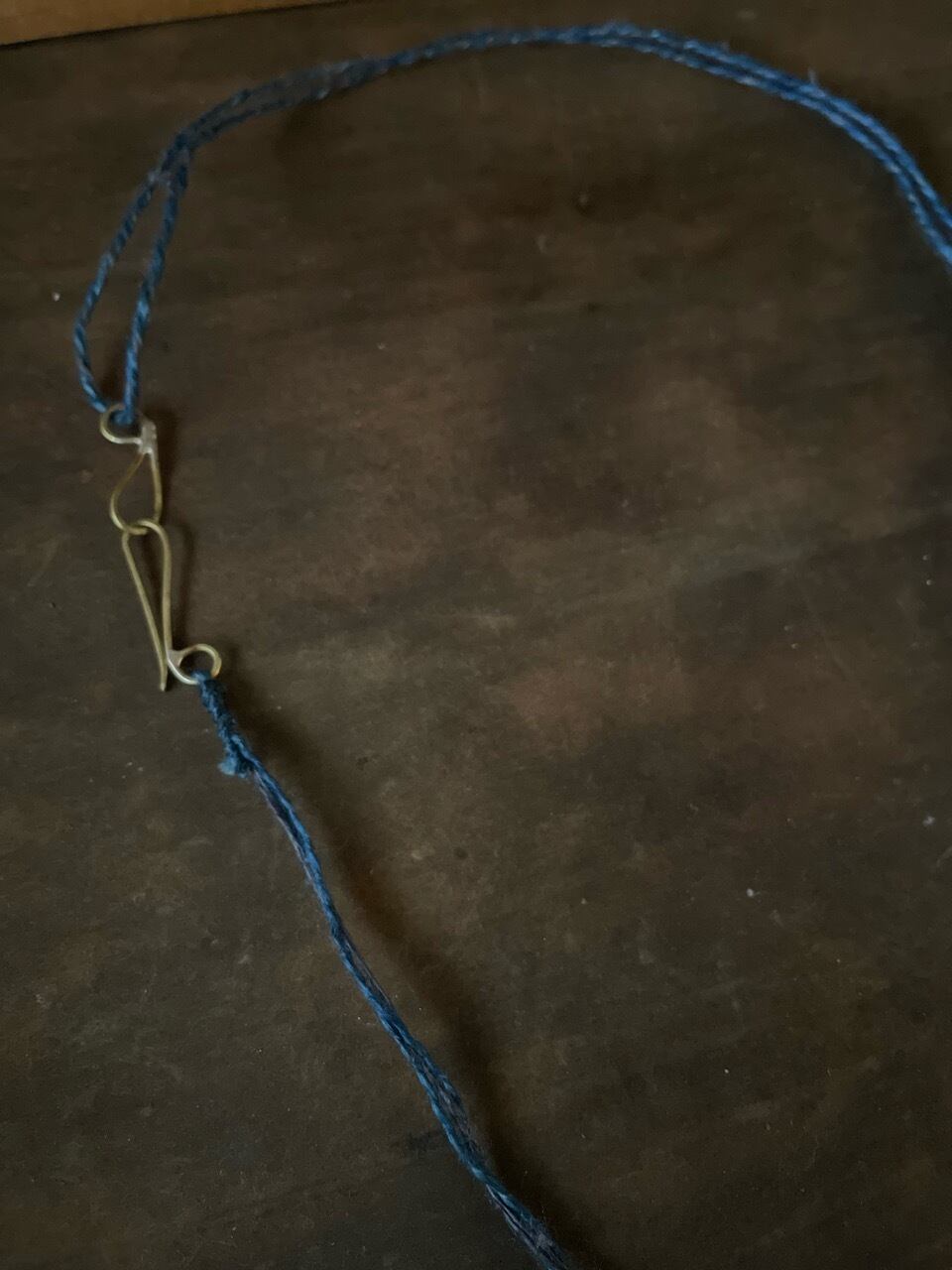 ●ネックレスの紐は、草木染めした天然繊維(麻)を、1本1本撚り合わせています。
