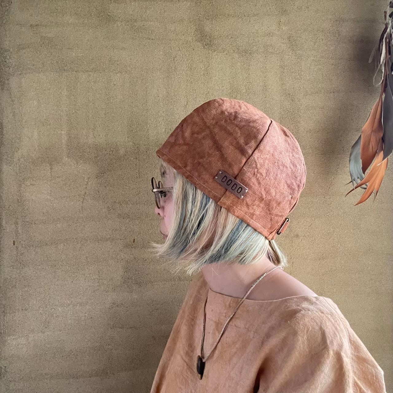 オーガニックヘンプ100%のキャンバス生地に柿渋を丁寧に染め重ねしたベレー帽です。