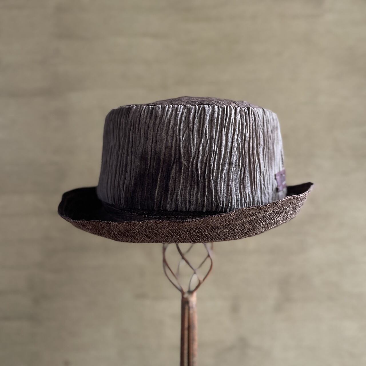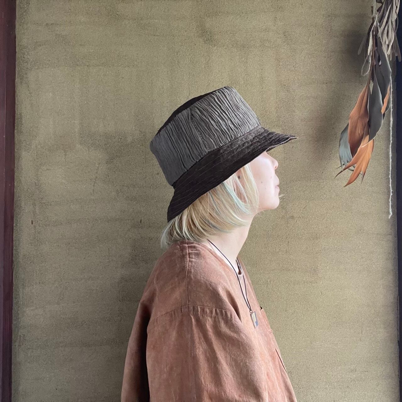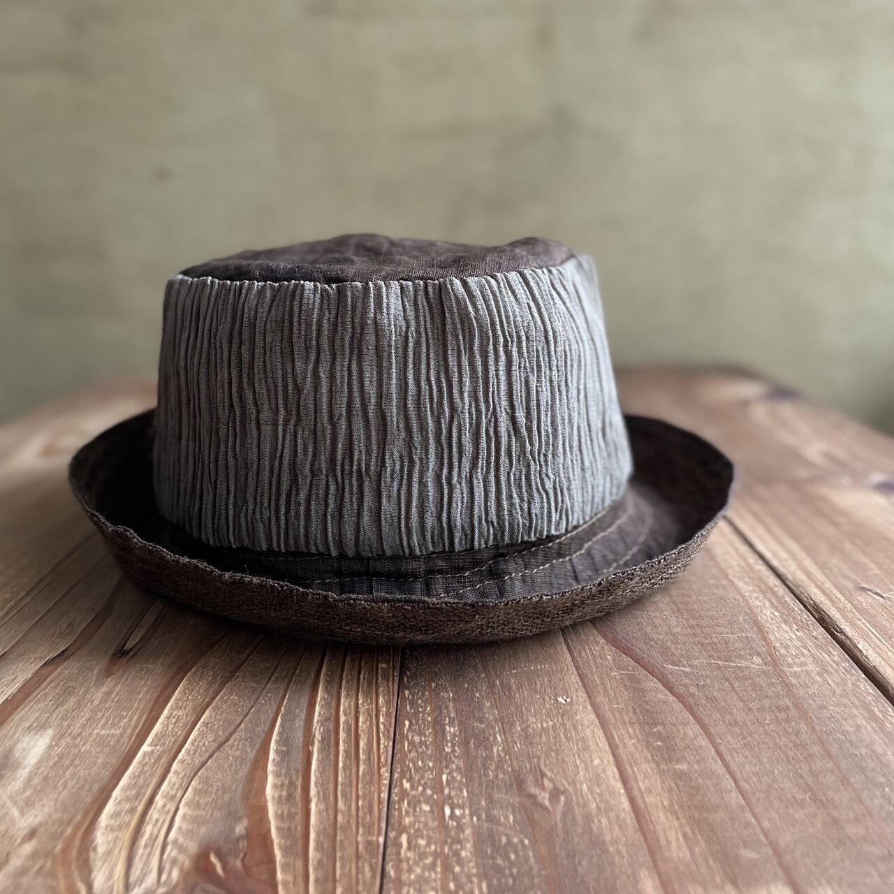 この生地と染めの上品でシックな美しさは、個性的×上品さを合わせた帽子に出来上がったと思います。