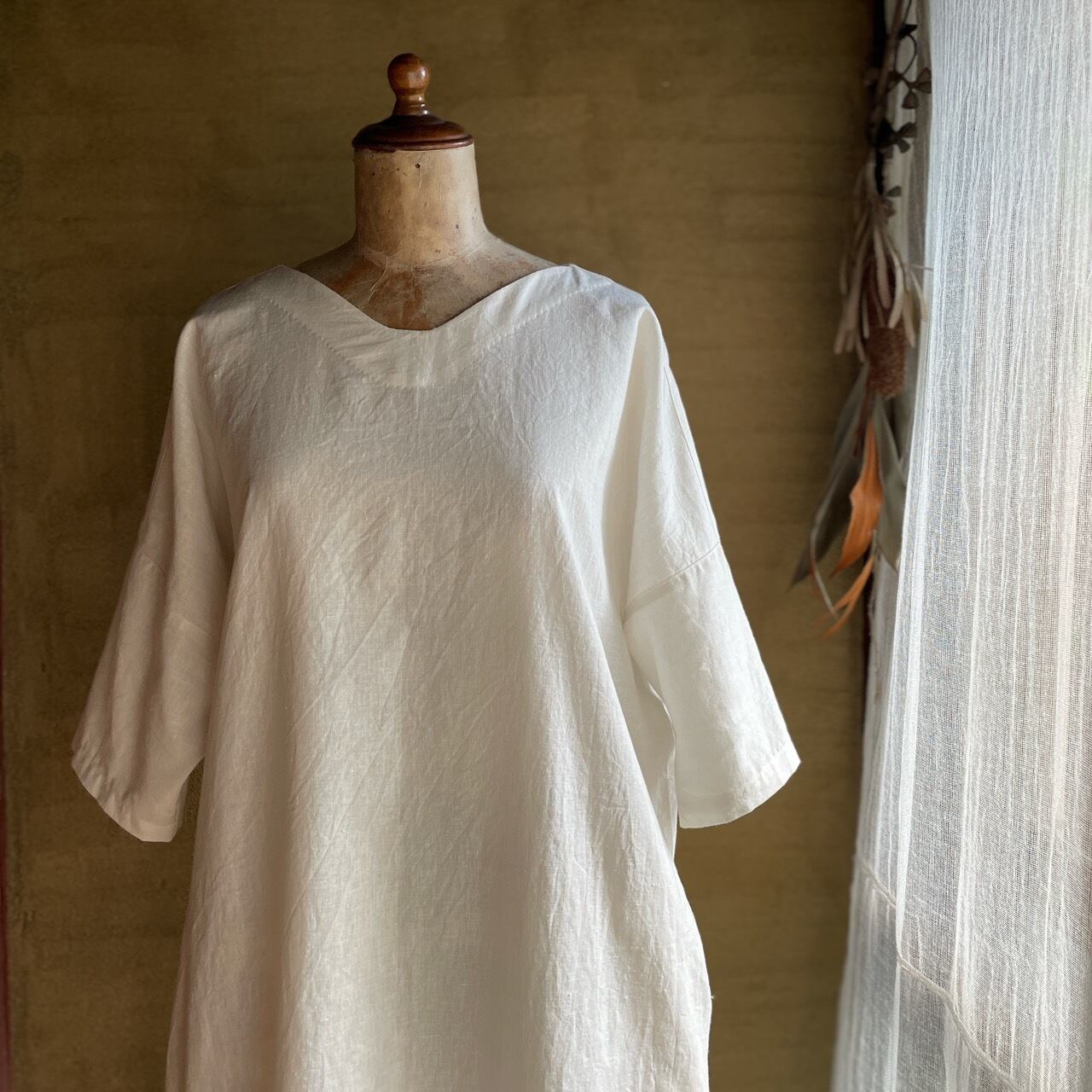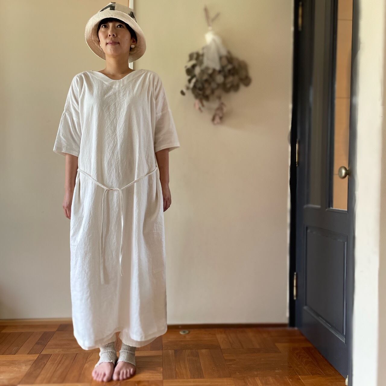 Organic hemp cotton |オーガニックヘンプコットン ゆるVネックドロースリングドレス/op-k-hc-02
