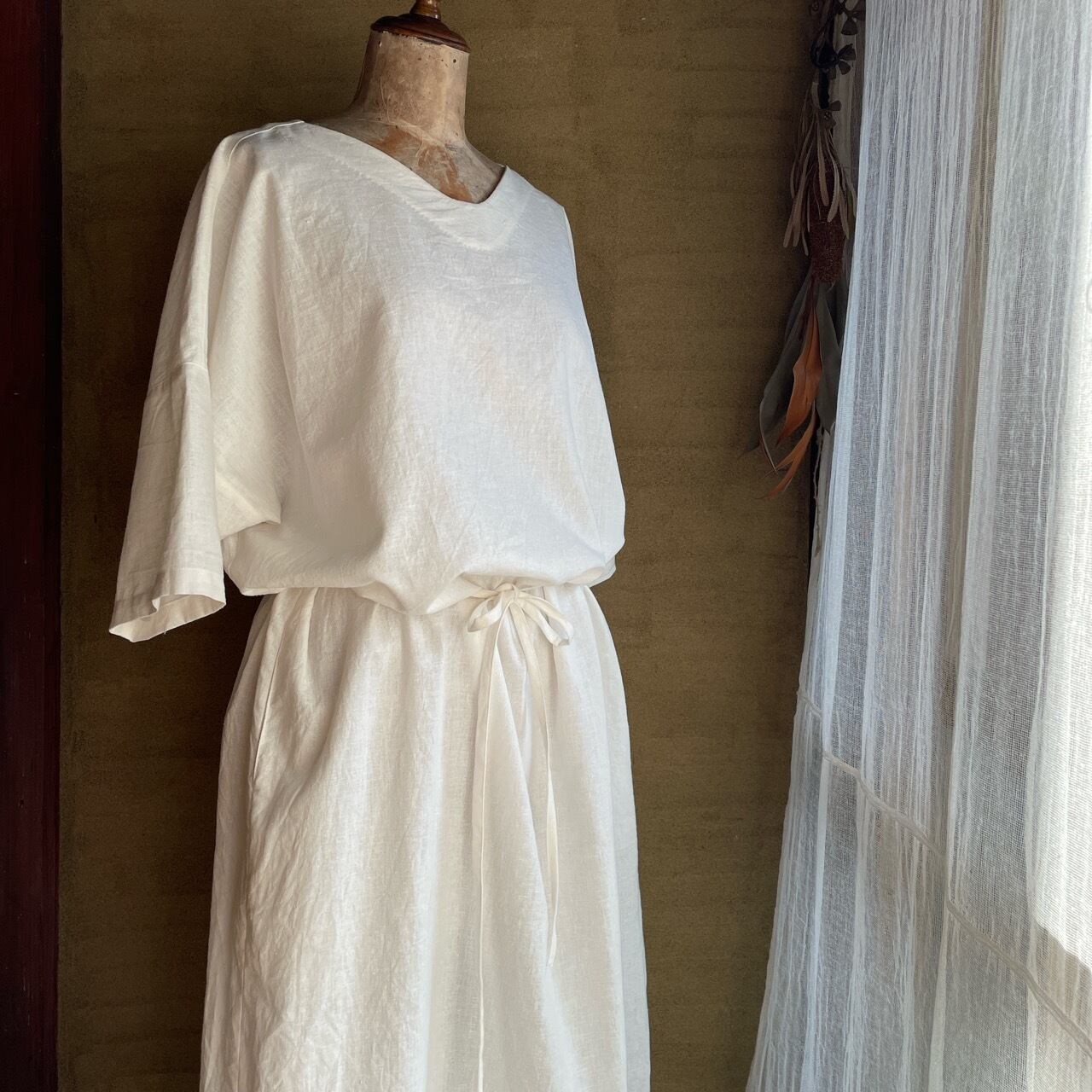 ✤夏でも快適ヘンプの服✤オーガニックヘンプコットン ✦ドロースリングドレス【受注制作】