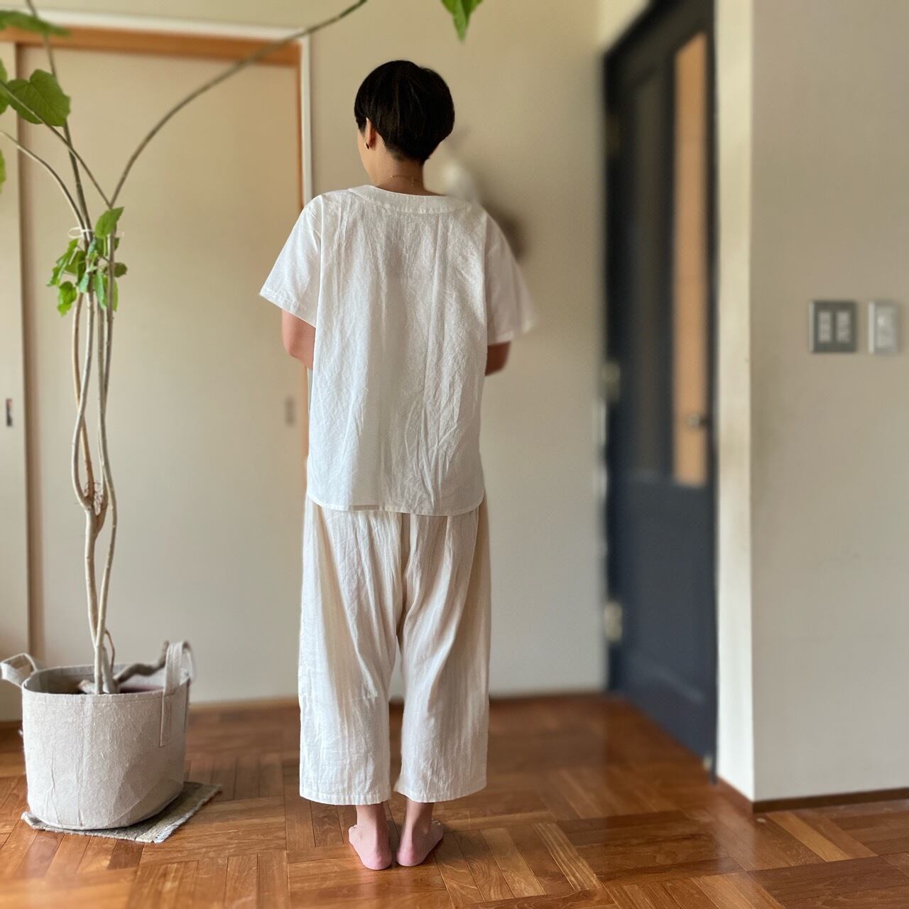 ふわふわ柔らかいオーガニックコットンダブルガーゼを使用。たっぷり、ゆったり着れるパンツです。