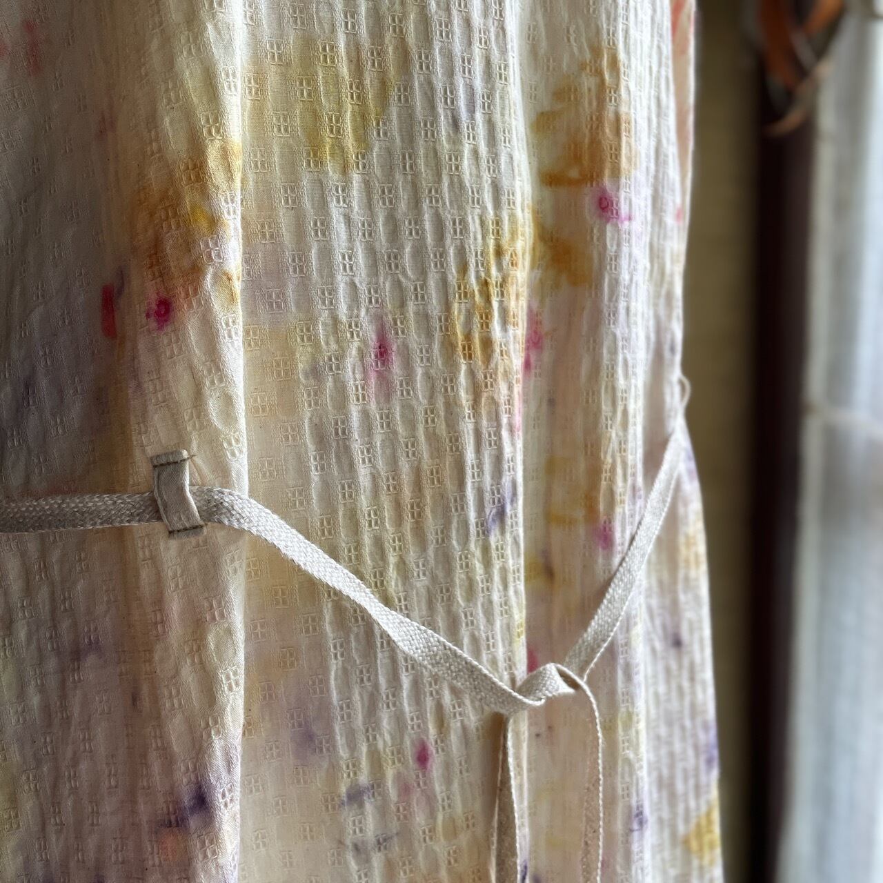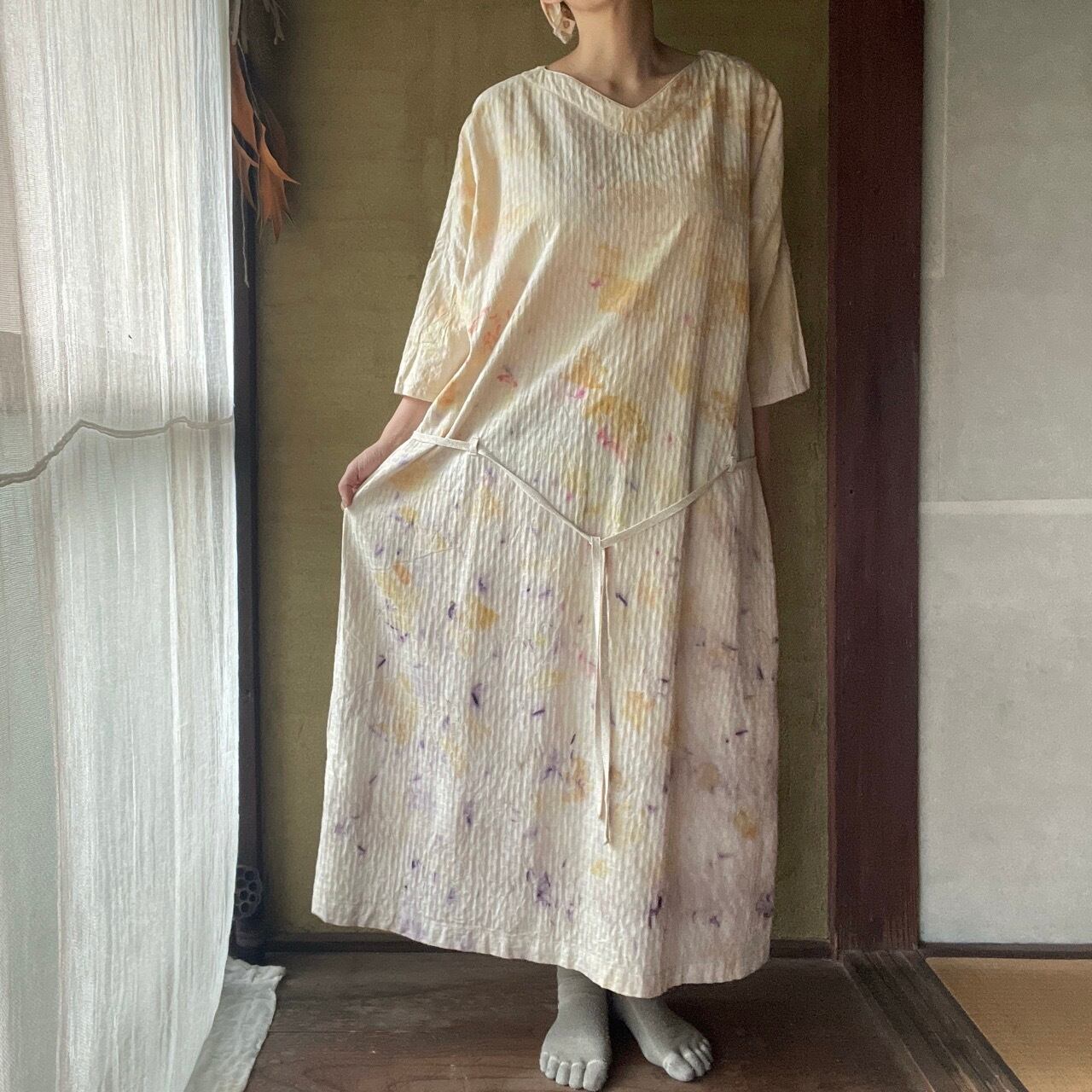 ワッフル織りコットン✤草木染め✤ 5分袖ワンピース
